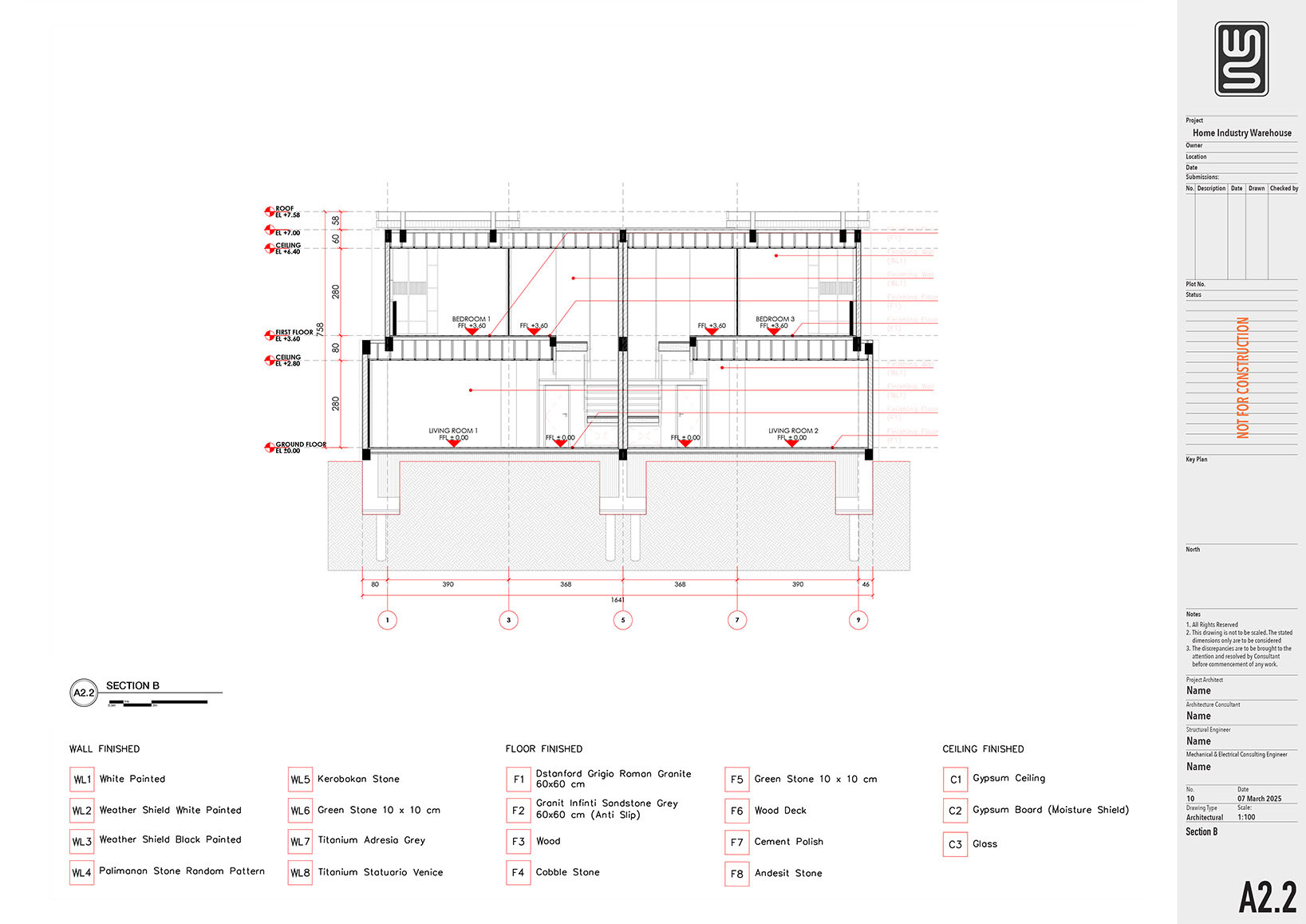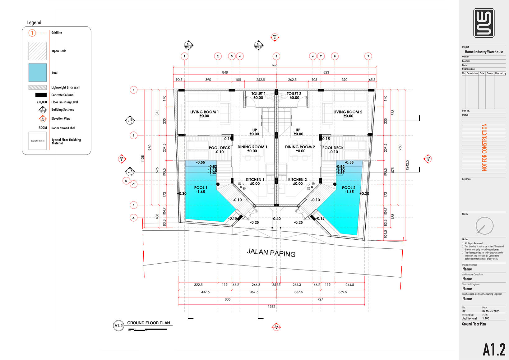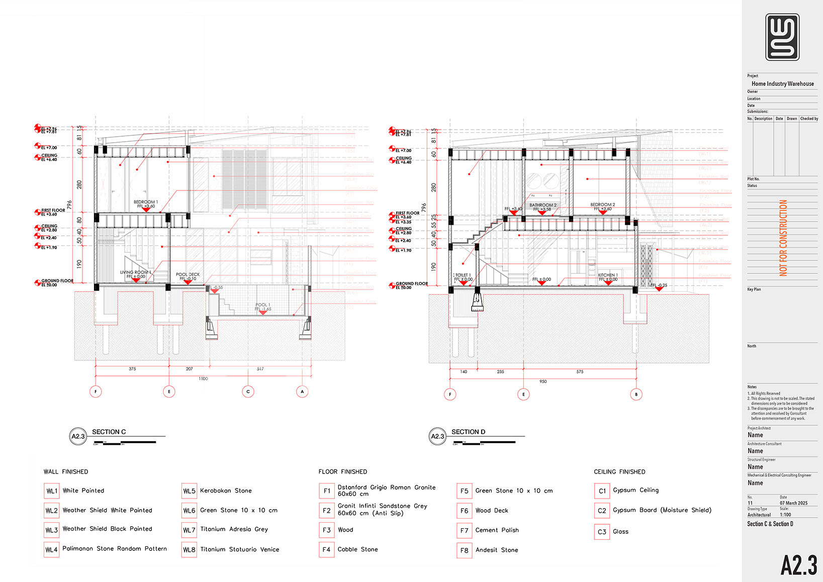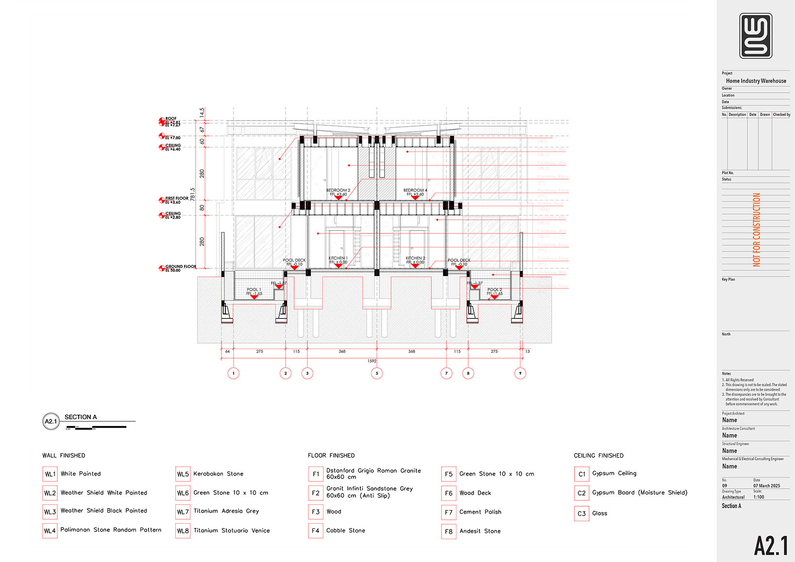 Architecture and structure technical drawing project of a 185 sqm private villa in Tumbak Bayuh, Mengwi
