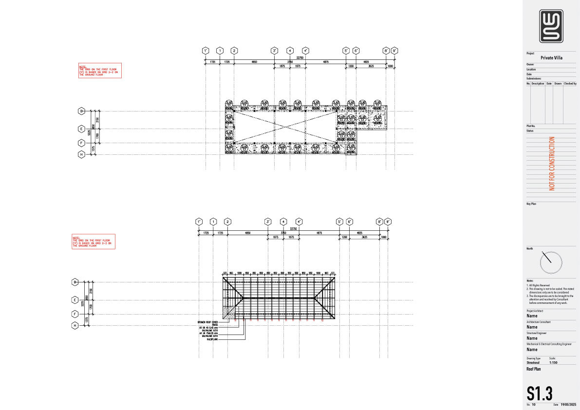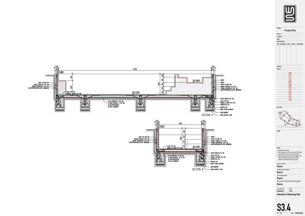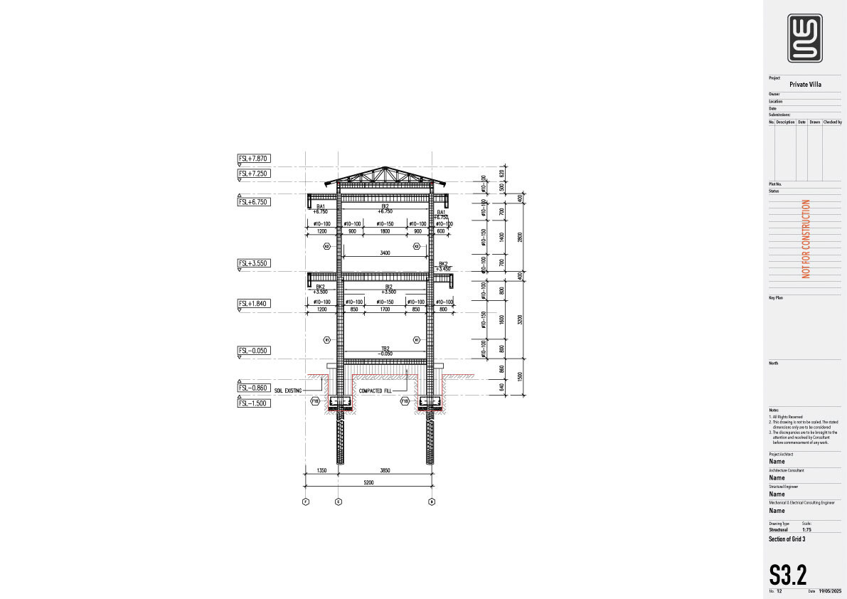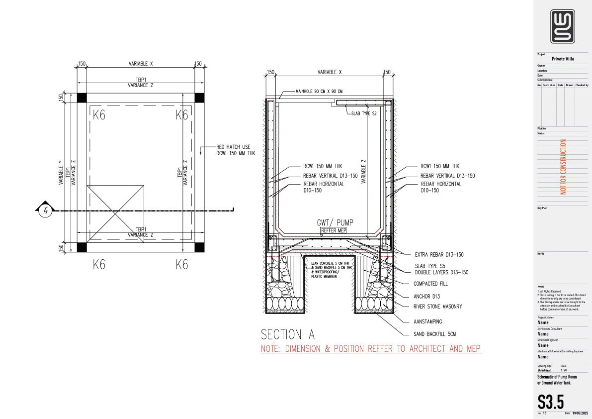 Structure technical drawing project of a 140 sqm private villa in Kedungu, Tabanan