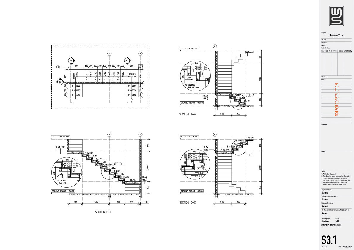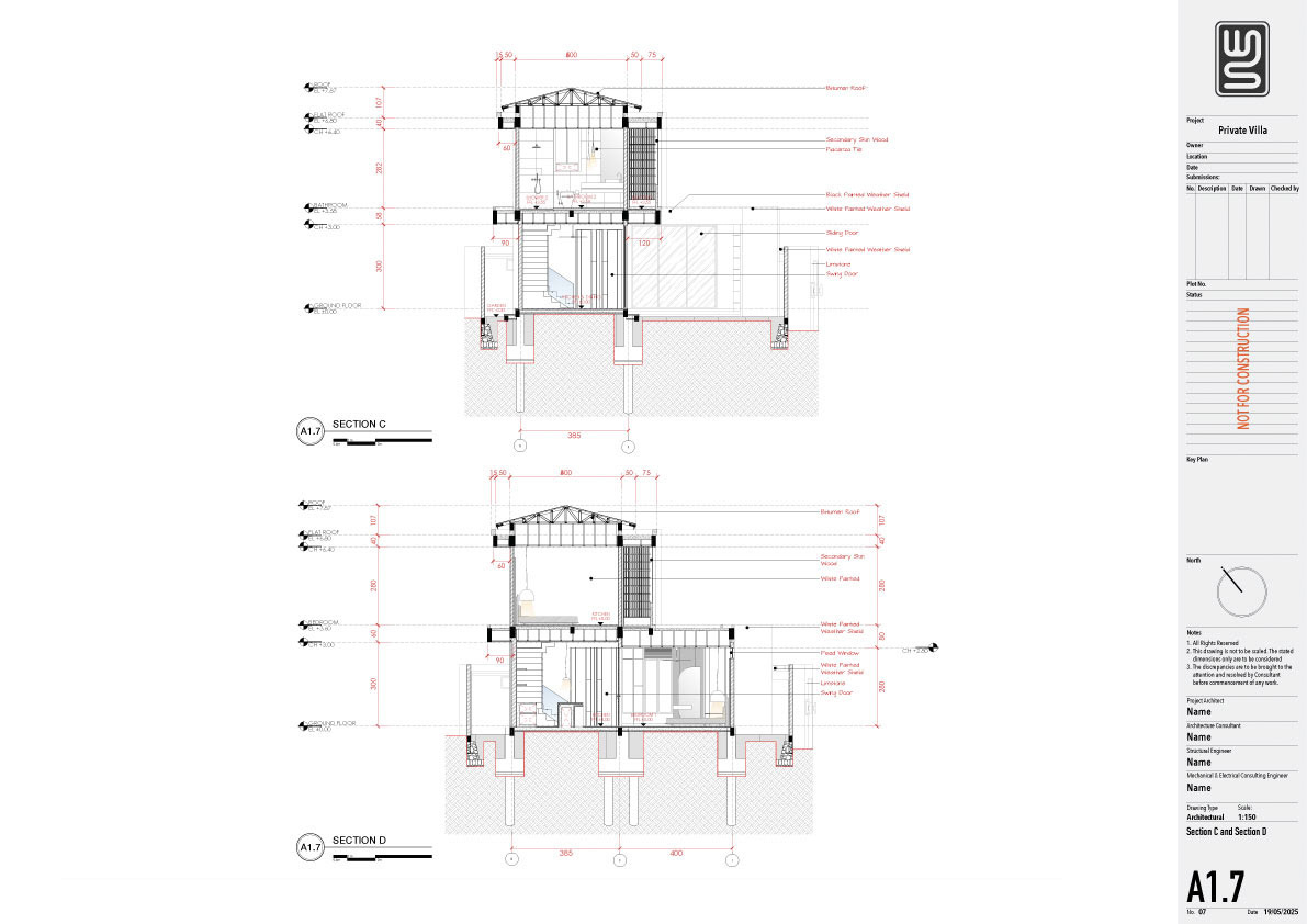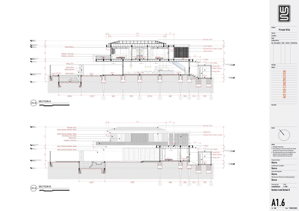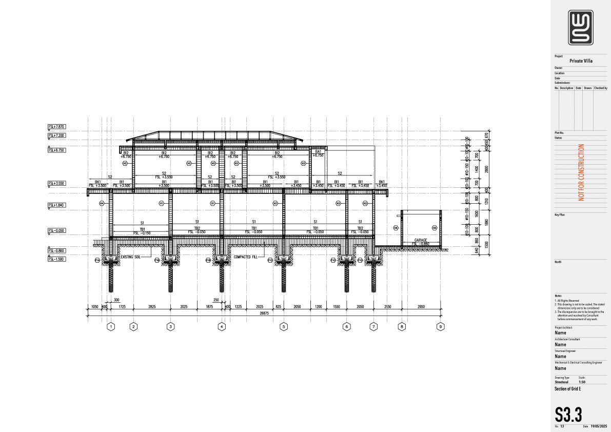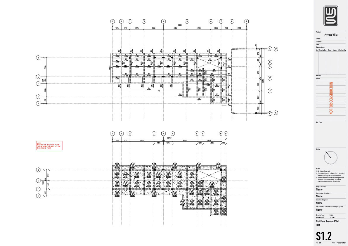 Structure technical drawing project of a 140 sqm private villa in Kedungu, Tabanan