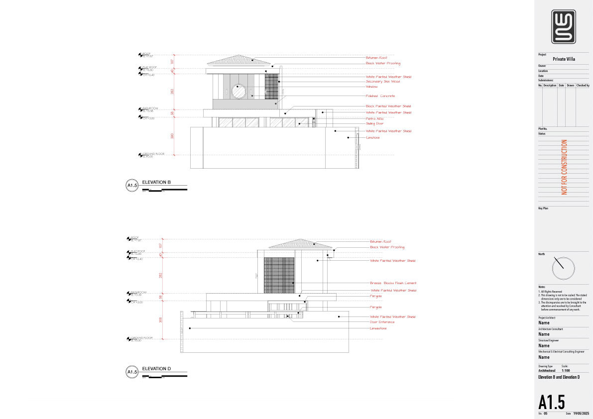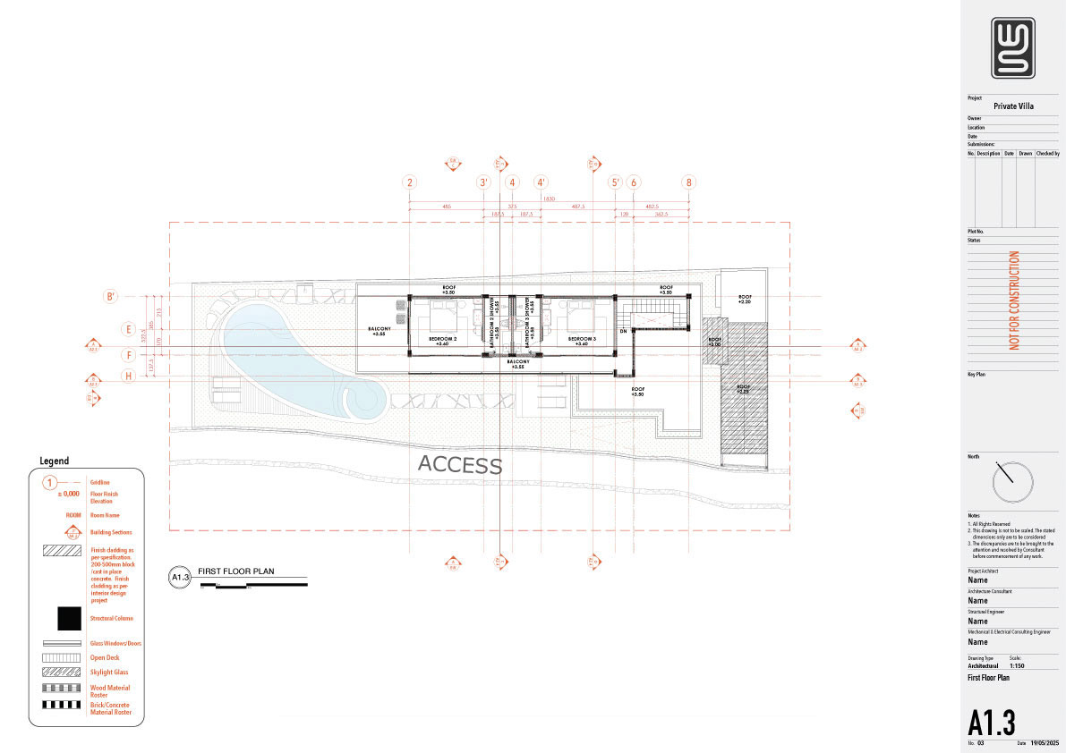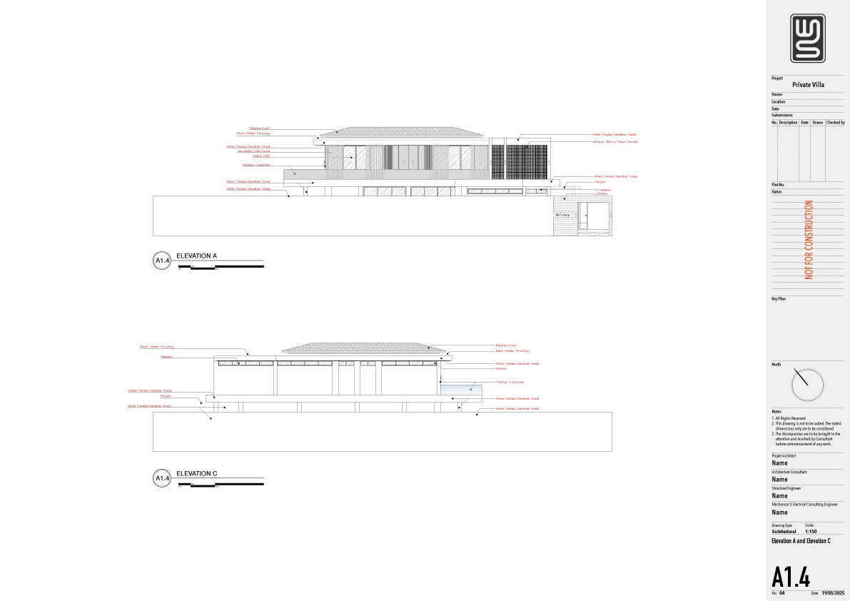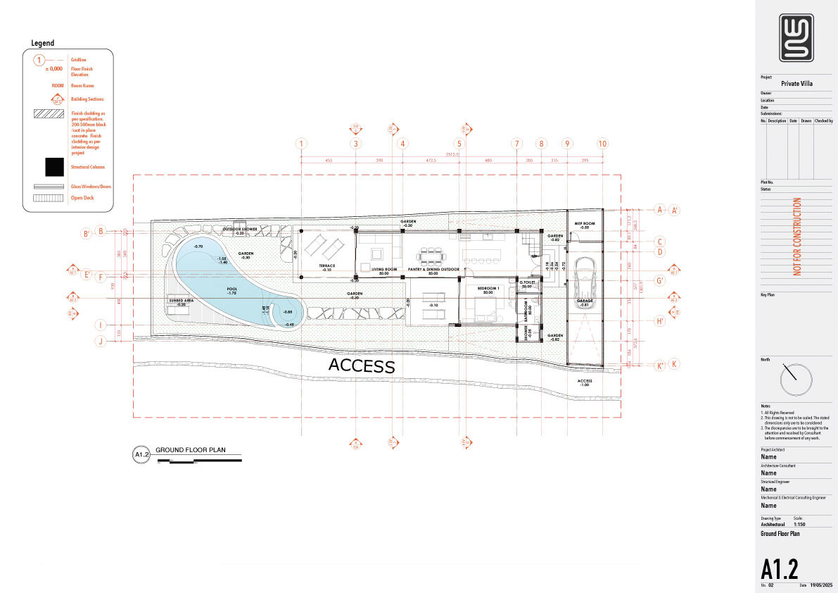 Structure technical drawing project of a 140 sqm private villa in Kedungu, Tabanan