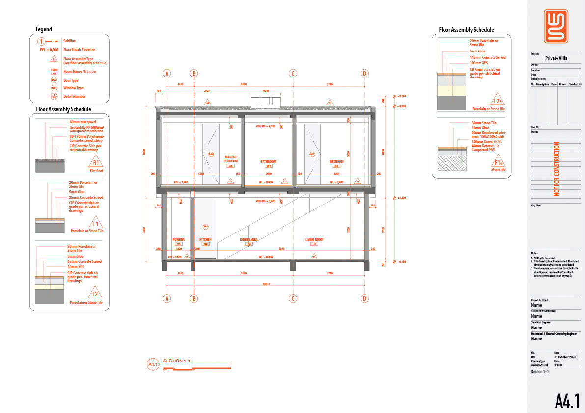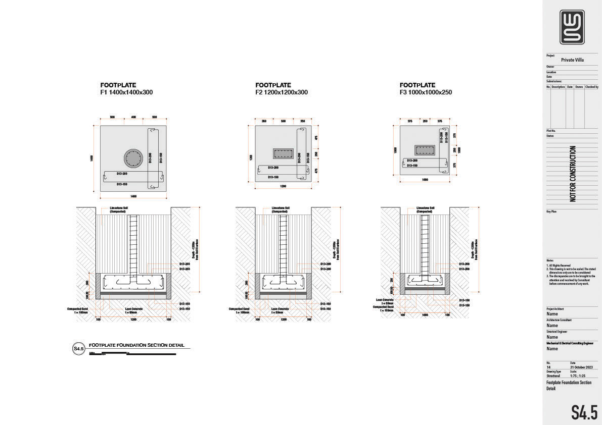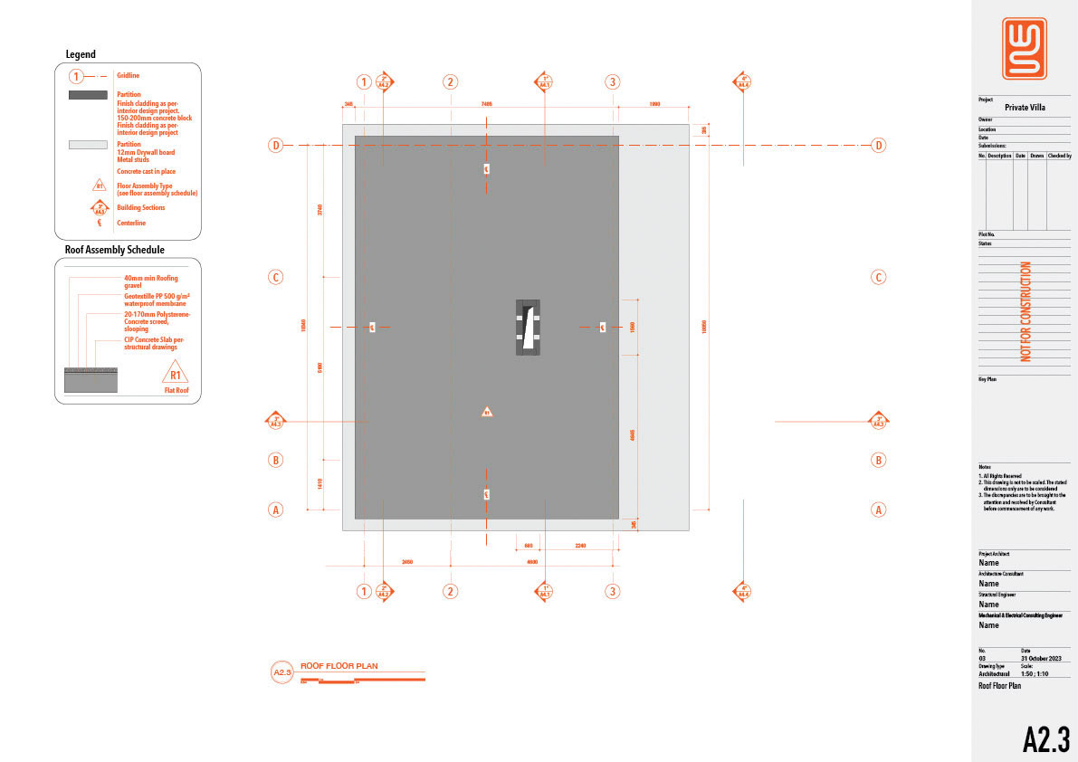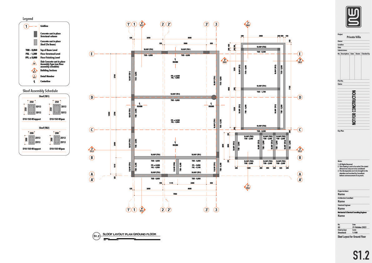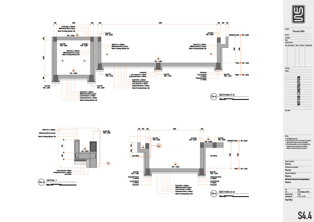 Architecture and structure technical drawing for a 150 sqm private villa in Nusa Dua, Bali
