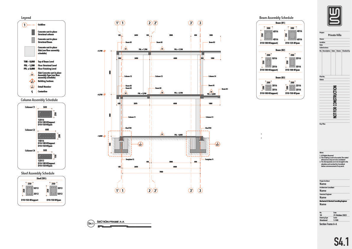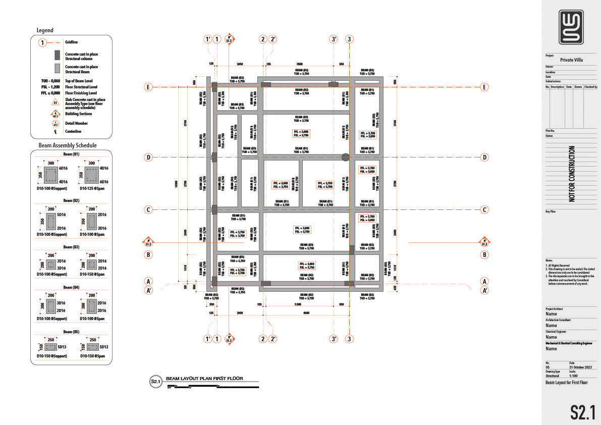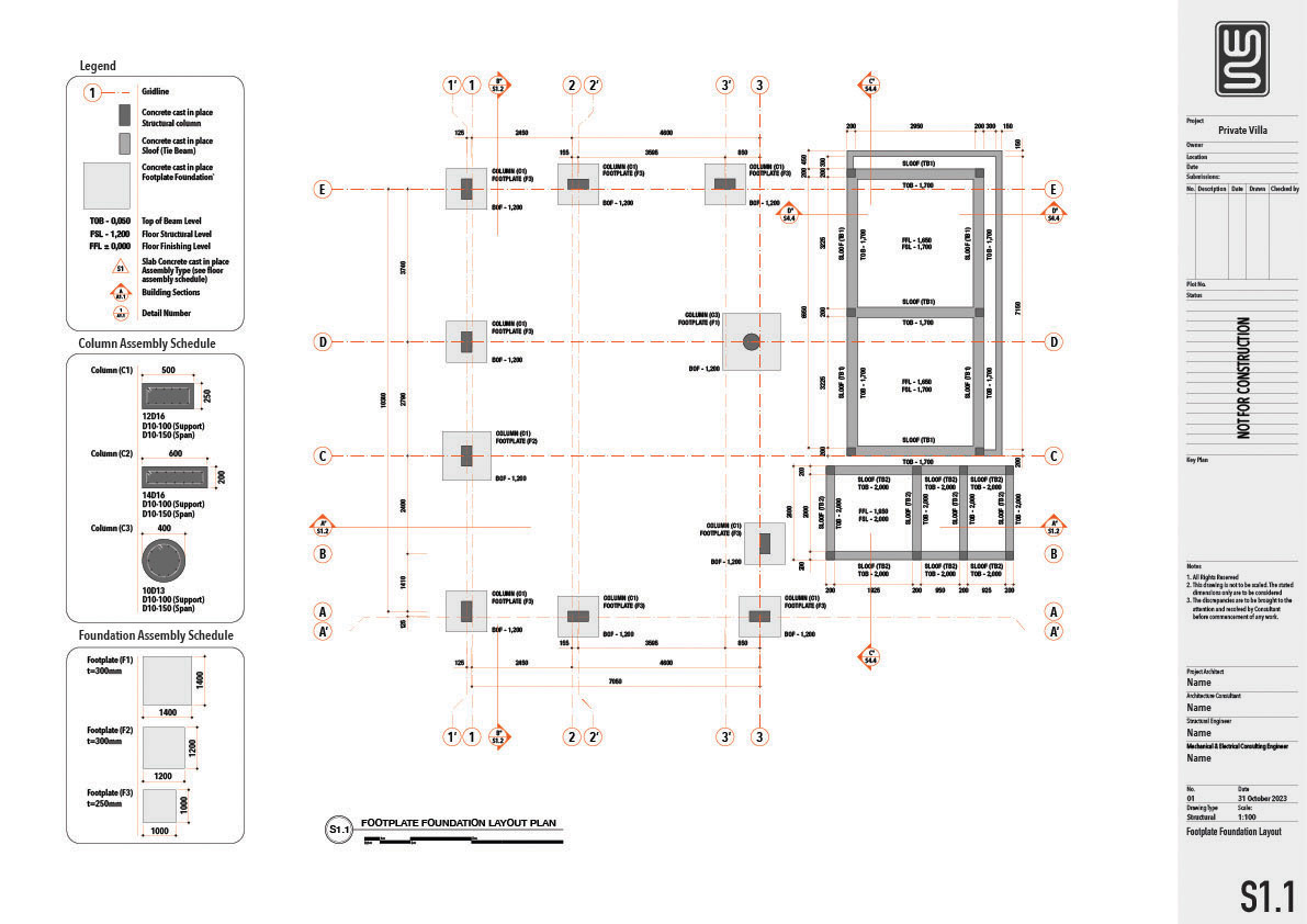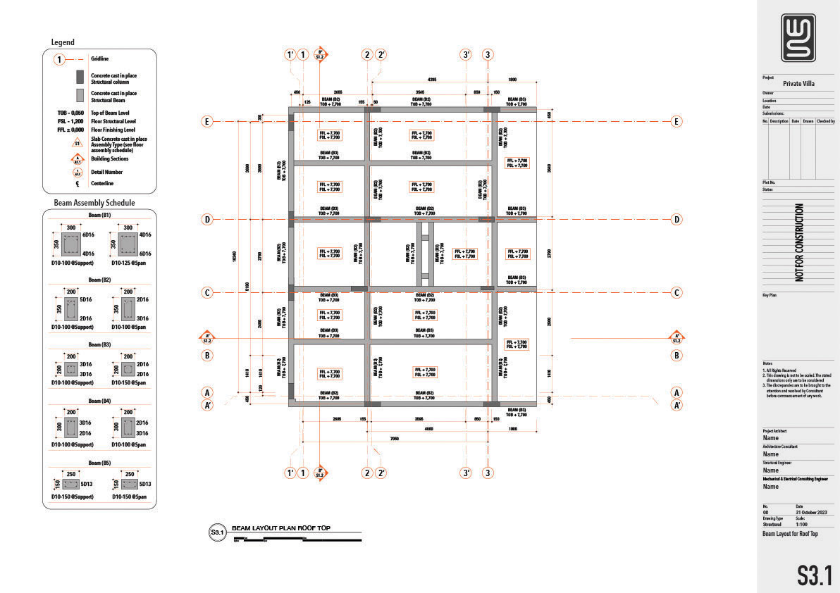 Architecture and structure technical drawing for a 150 sqm private villa in Nusa Dua, Bali