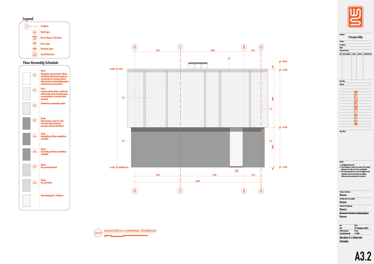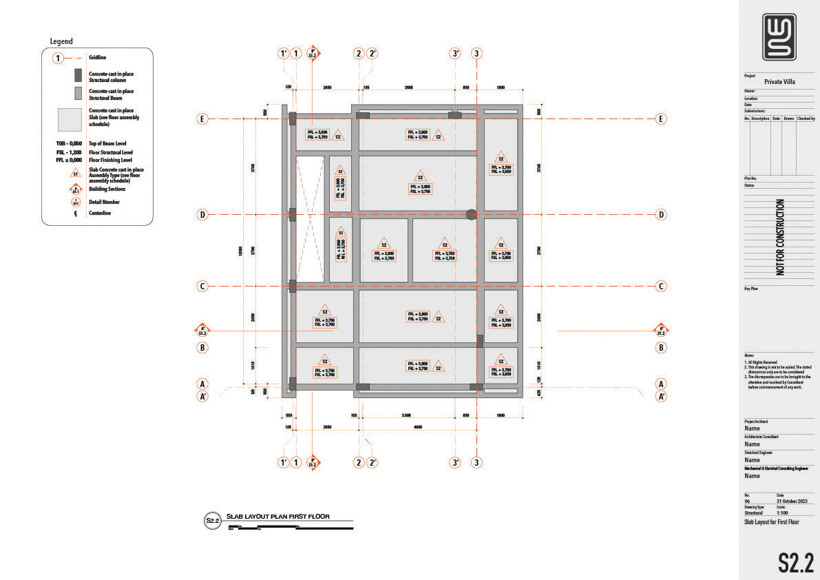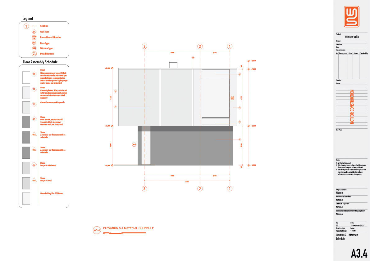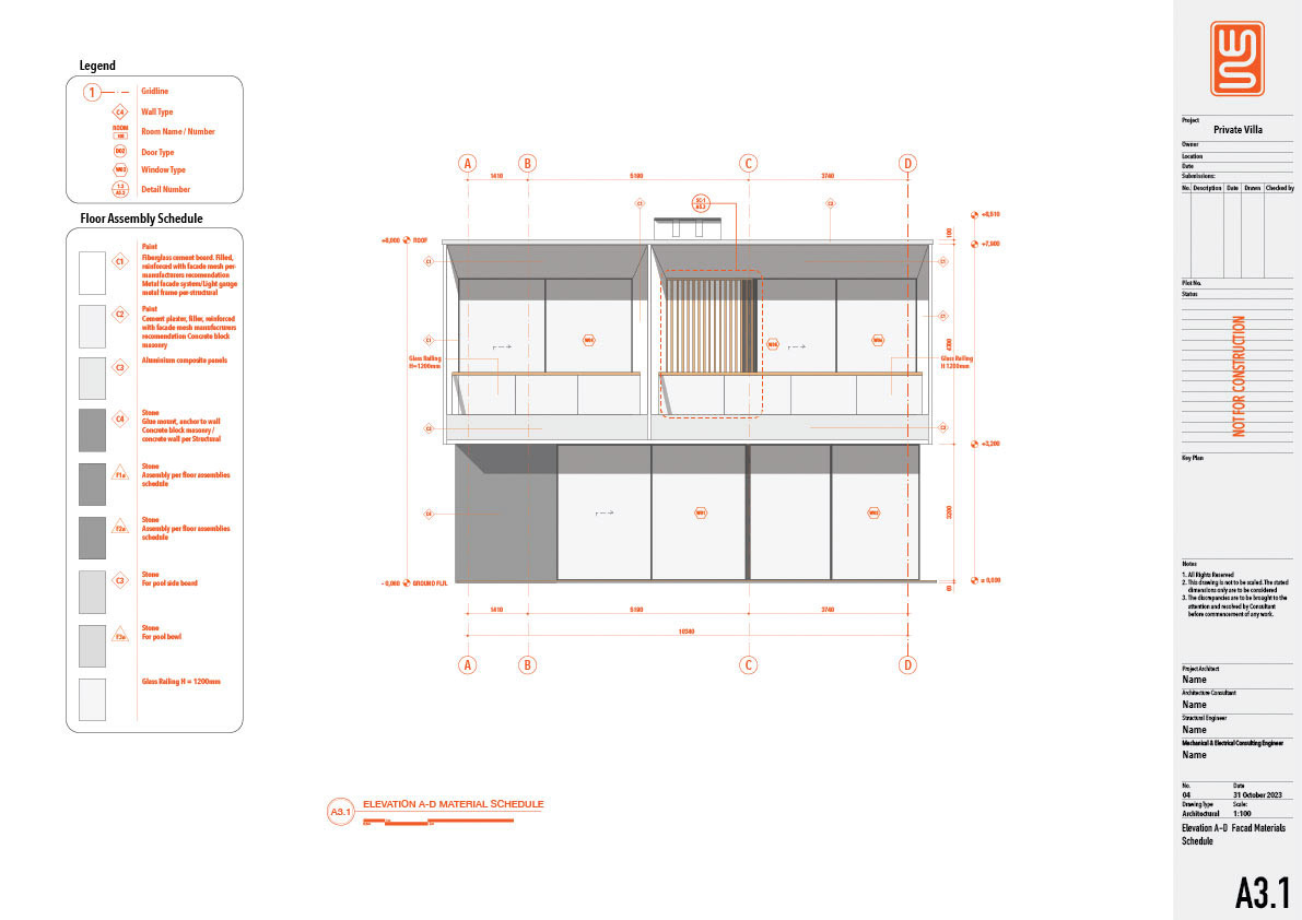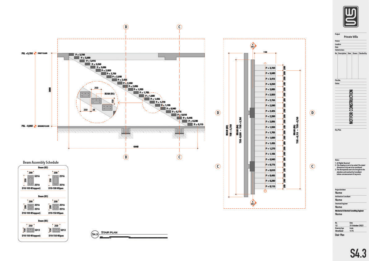 Architecture and structure technical drawing for a 150 sqm private villa in Nusa Dua, Bali